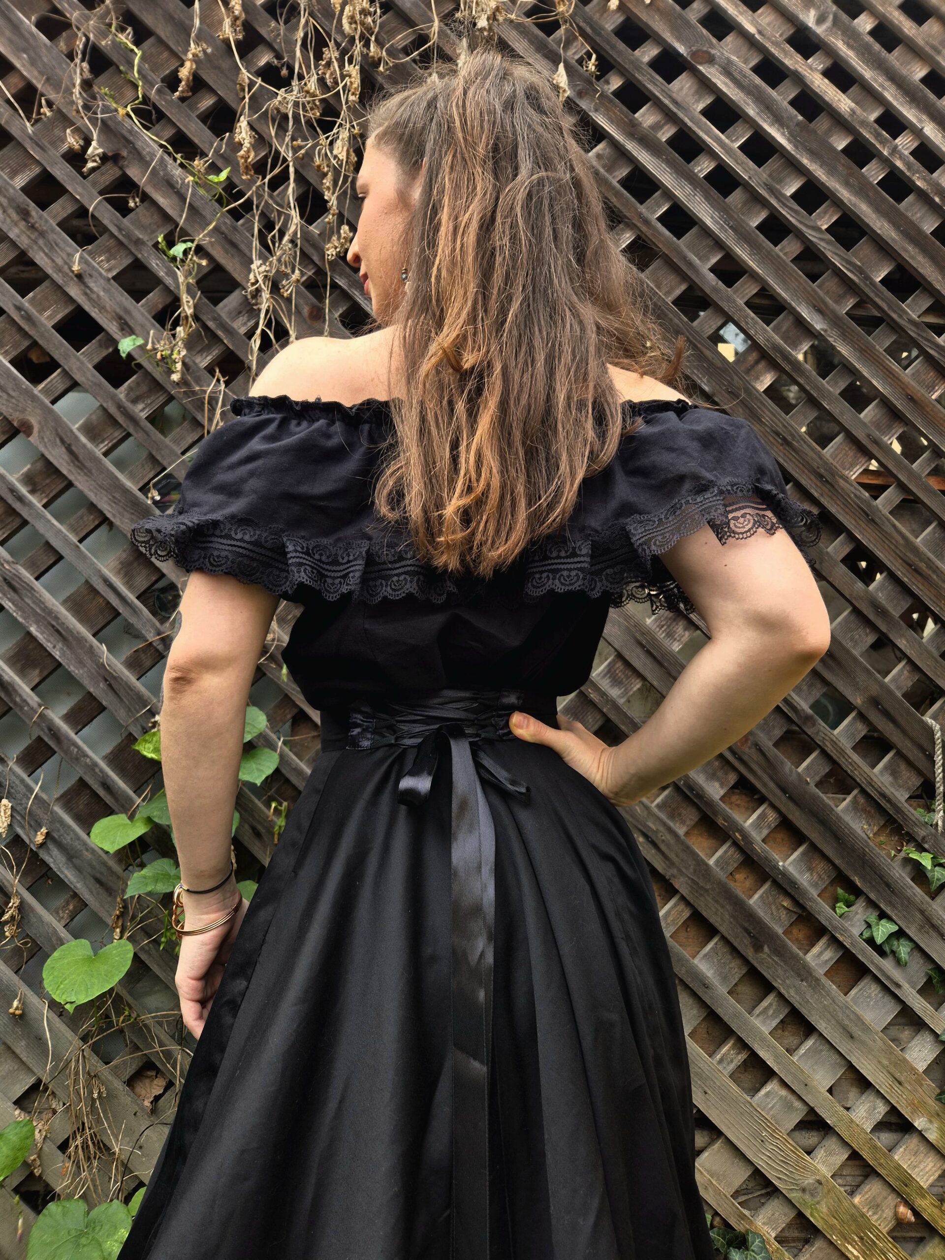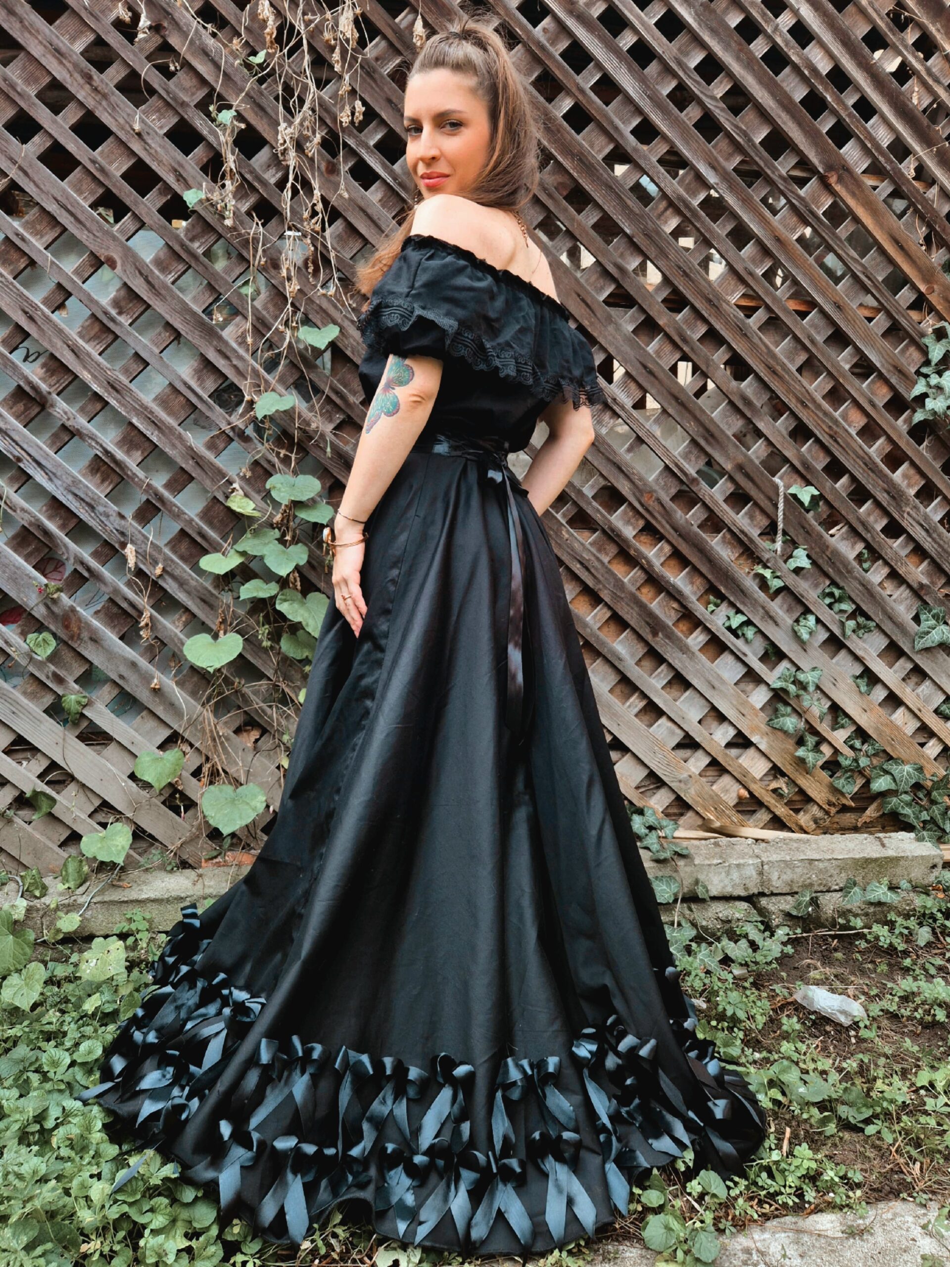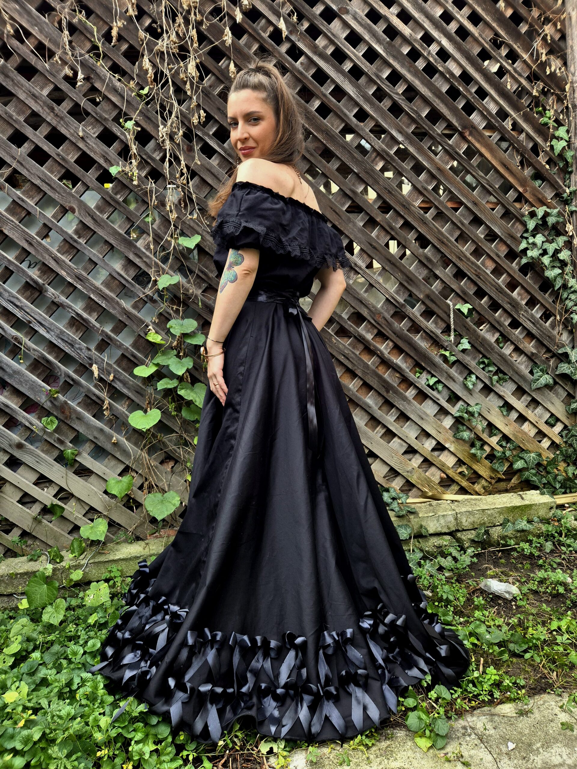The Midnight Skirt: Crafted from premium heavy cotton, this skirt features a corset-waist for a regal fit and is finished with a cascade of hand-stitched bows, adding a touch of whimsical mystery.